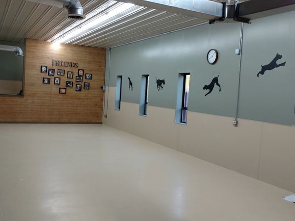 This facility has ample indoor space contains 1600 sq. ft. for training and play when the weather doesn't cooperate. Facility is complete with a separate grooming area, laundry, kitchen and private office.